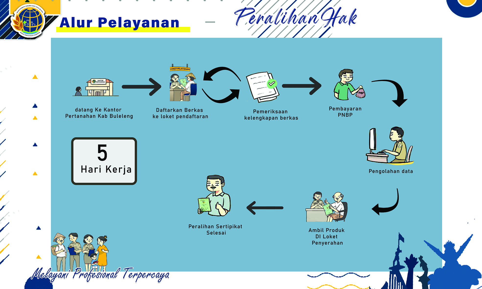 - Tanda bukti hak atas tanah (SertiFikat pipil/Surat Ketetapan Ipeda SPPT. Padol/Surat Jual Beli Tanah sebelum tahun 1962/Berita acara penelitian lapangan obyek P 2 T)